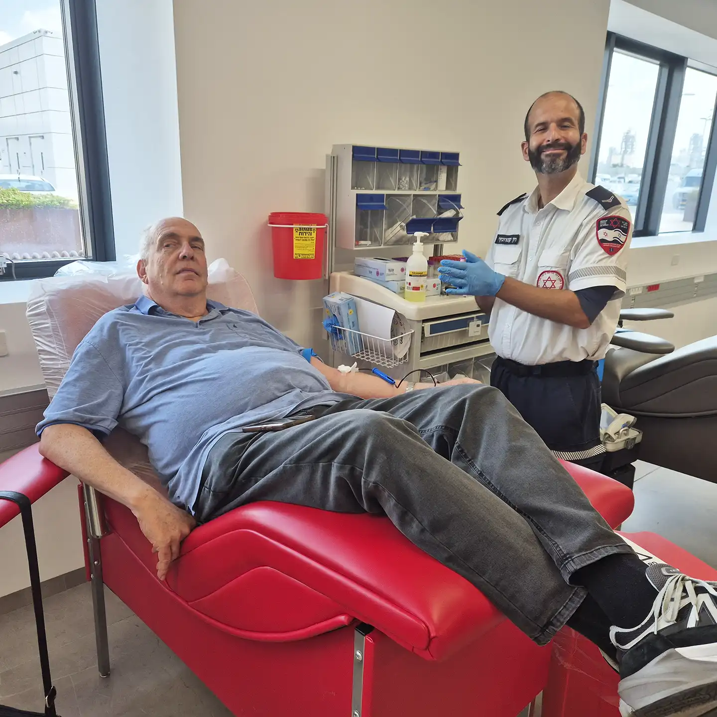تعمل جمعية المتبرعين بالدم المتطوعين في إسرائيل جنبًا إلى جنب مع خدمات الدم التابعة لنجمة داود الحمراء، والتي تقوم سنويًا بجمع ما يقرب من 270,000 وحدة دم من المتبرعين المتطوعين، الذين يقومون بذلك دون أي تعويض مالي (حوالي 1,000 وحدة دم يوميًا، الجمعية). يتبرع كثيرًا ويساعد في كل قضية التبرع بالدم في إسرائيل.
